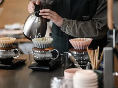 店名に由来する桜井凧と旧建材店の名残を活かしたコーヒー専門店